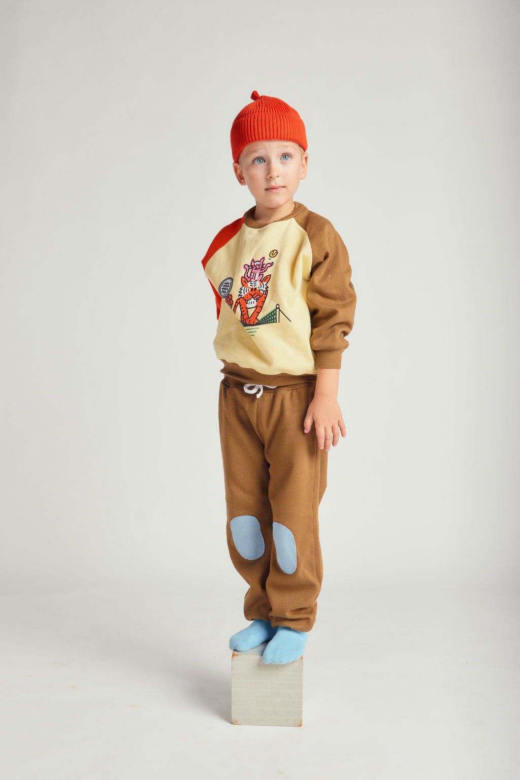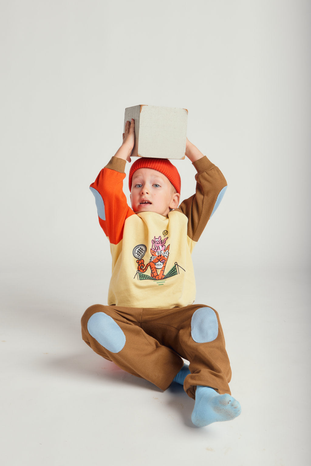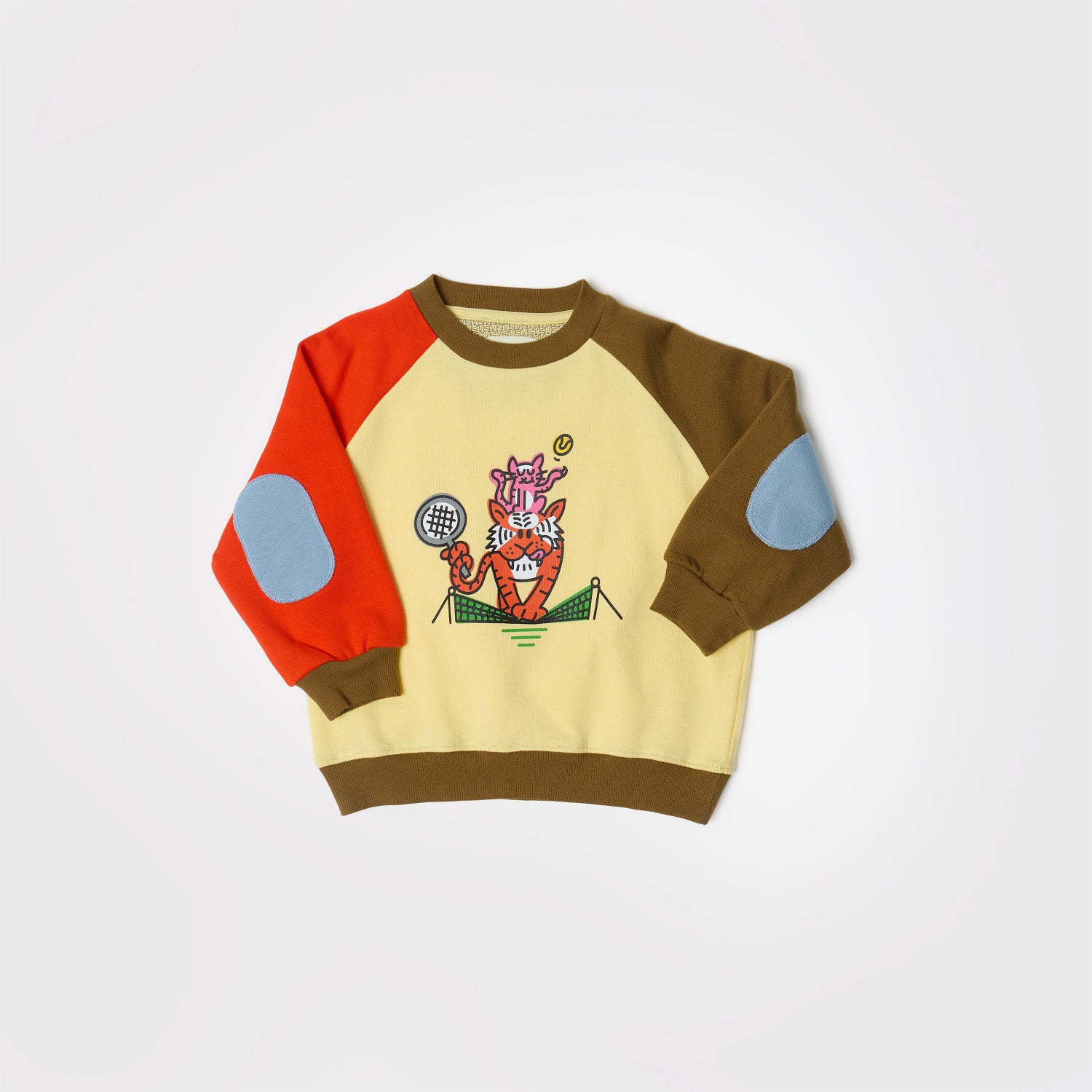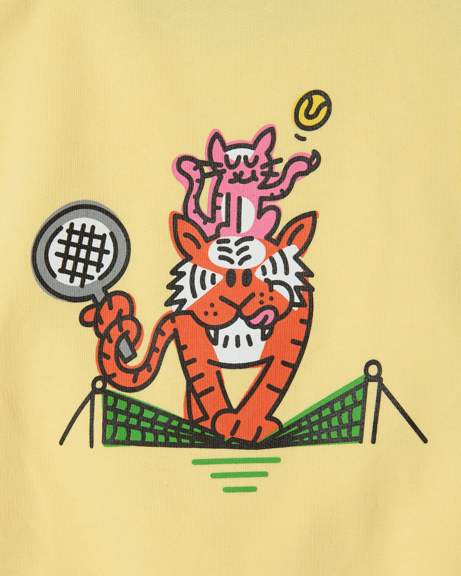 Game, set, match. Dette træningssæt er skabt til små mestre både på og uden for banen. Med raglanærmer og forstærkede lapper på albuer og knæ er det designet til komfort og holdbarhed gennem alle eventyr. Den legende tiger- og katte-tennisgrafik på fronten tilføjer en sporty sjov til looket, mens det bløde bomuldsblandingsstof med en hyggelig inderside holder børnene komfortable hele dagen. Perfekt til skole, weekender og aktiv leg.