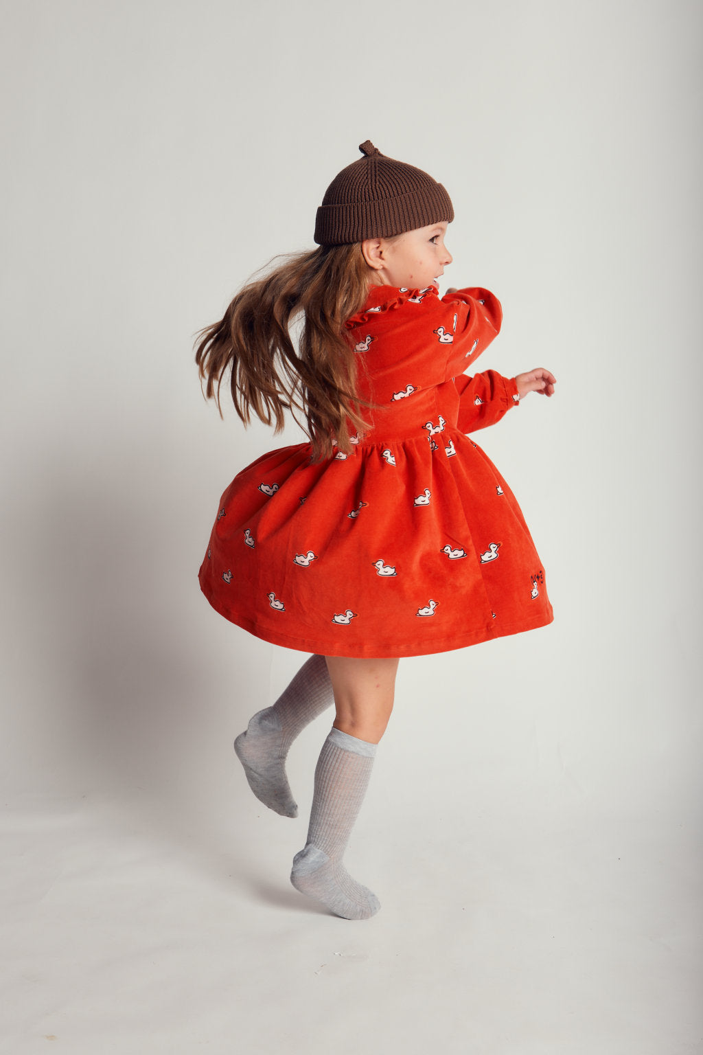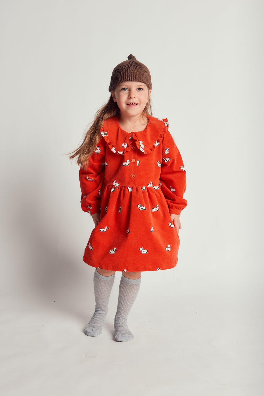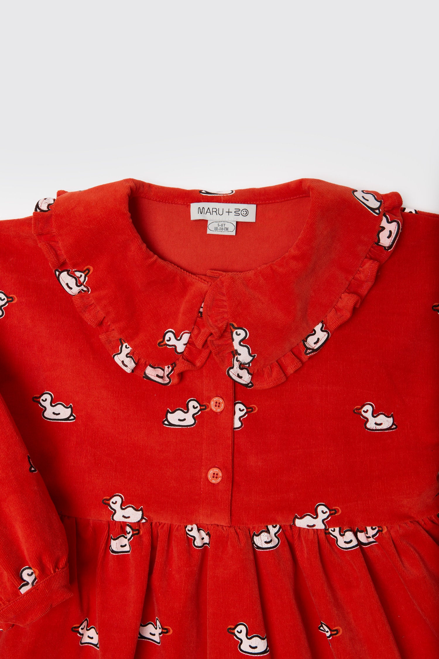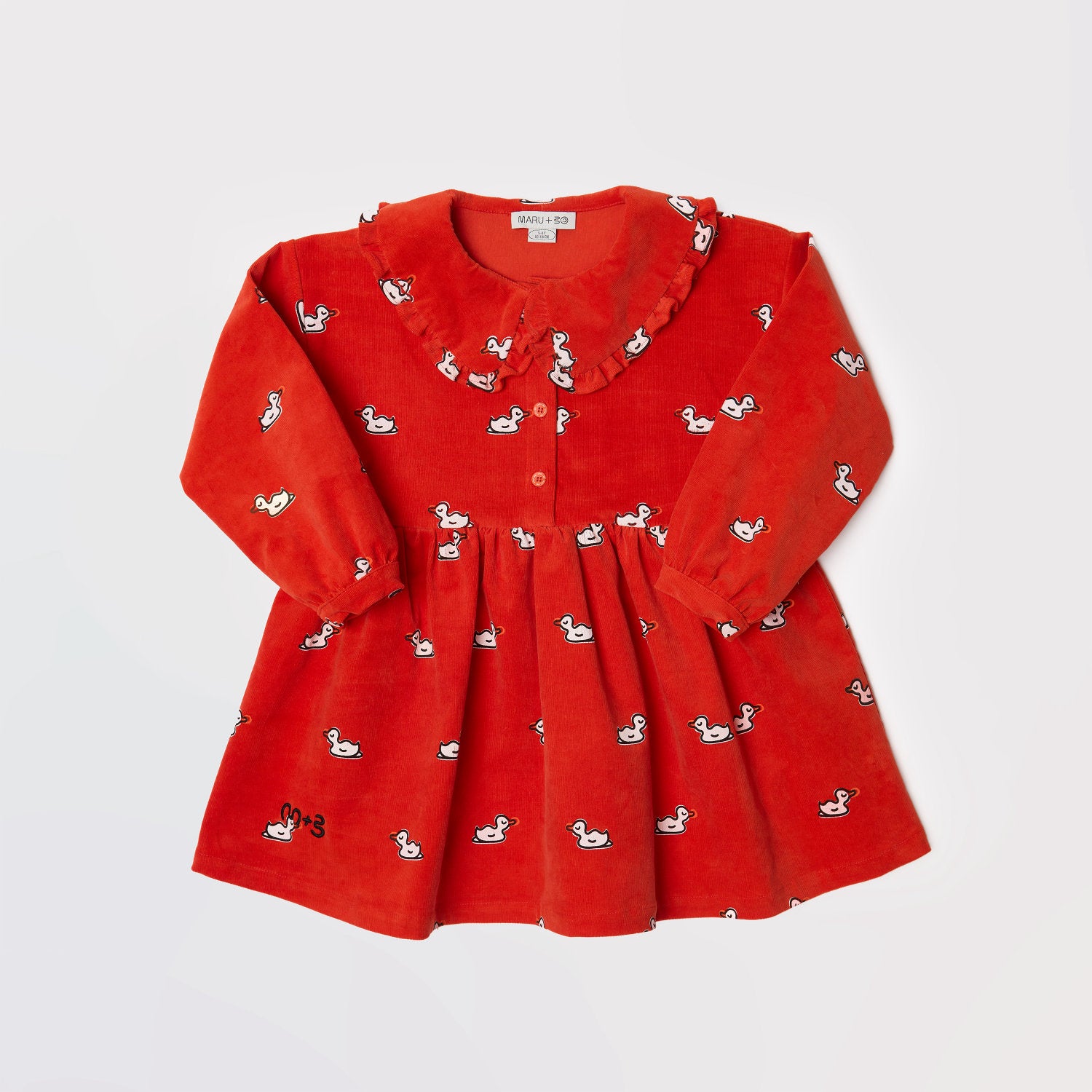 Ova baršunasta haljina stvorena je za vrtnju, istraživanje i svakodnevne avanture, kombinirajući zabavne detalje s lakoćom udobnosti. Mekana tkanina pruža osjećaj ugode, dok volančić na ovratniku i svijetlocrveni gumbi dodaju dodatnu razigranost. Završena s izvezenim logotipom na rubu, ovo je veseli komad koji je jednako prikladan za igru s prijateljima kao i za posebne izlaske.